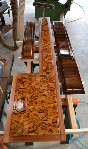Grain direction and multiple types of material are the theme of these doors. Parts fit together in mortise and tenon, accounting for expansion and contraction of materials as humidity levels change throughout the year. The founding theme of ArtStruct is the use of end-grain patterns, and these doors keep this ArtStruct tradition alive. Windows in this door series can be fixed with either frosted safety glass or a more expressive use of glazing…..